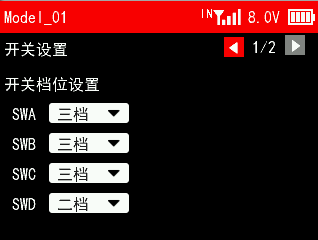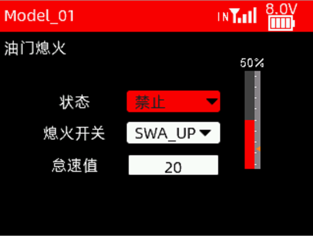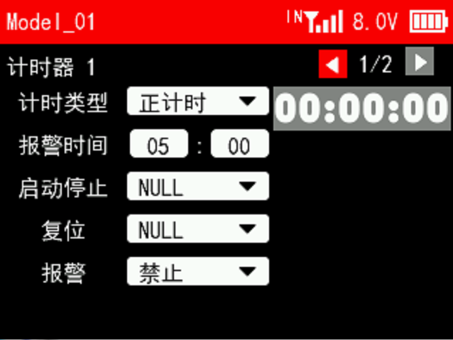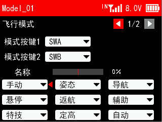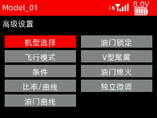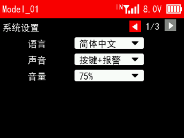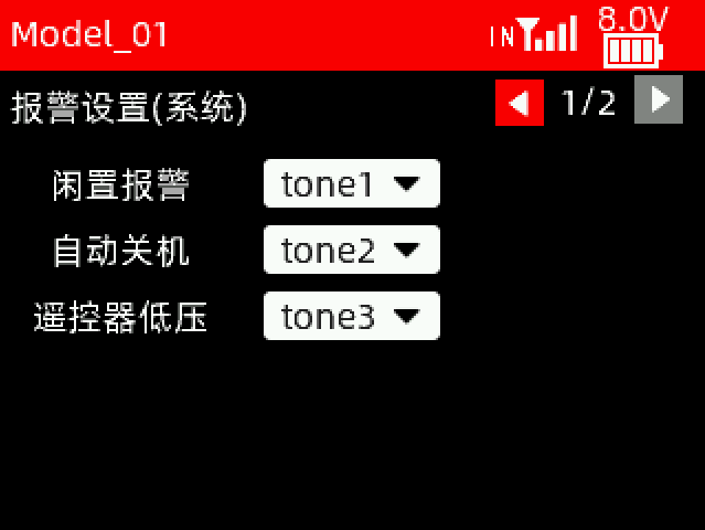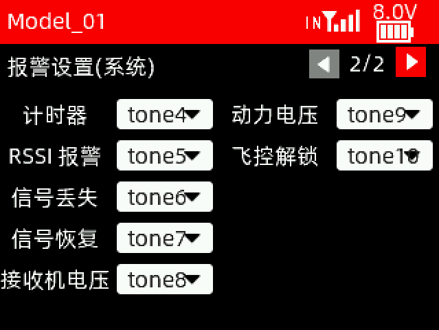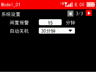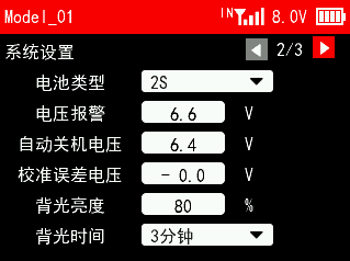 接收机电压报警值:当接收机电压达到设置的接收机电压报警值