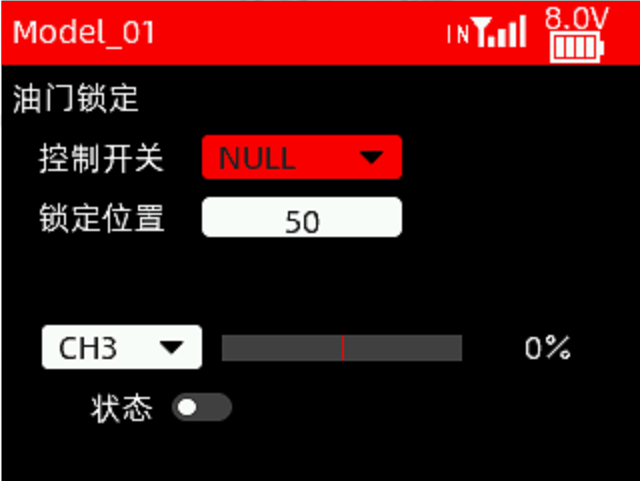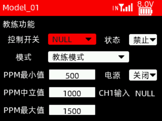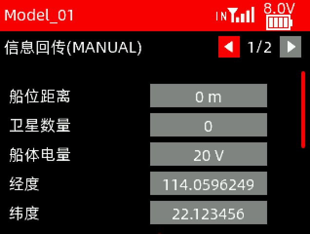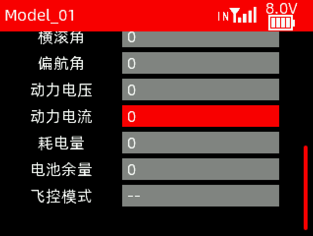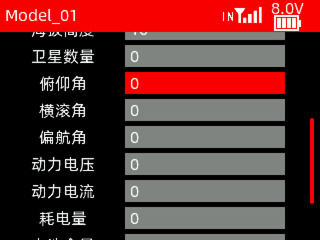 接收机电压:回传的接收机电压值。如果显示为NULL,则表示未回传接收机电压。
