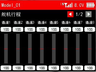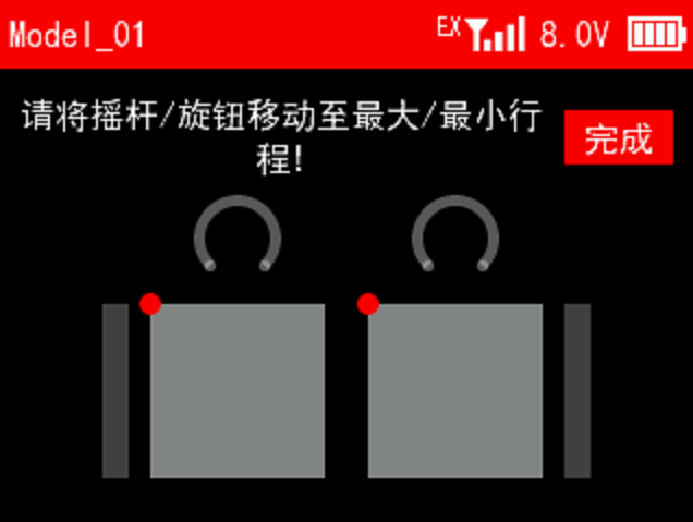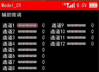 接收机电压校准:当显示的接收机电压和实际的接收机电压有差距时,可以设置接收机电压校准值,使电压显示一致。接收机电压校准的调节范围为-5V到+5V之间。