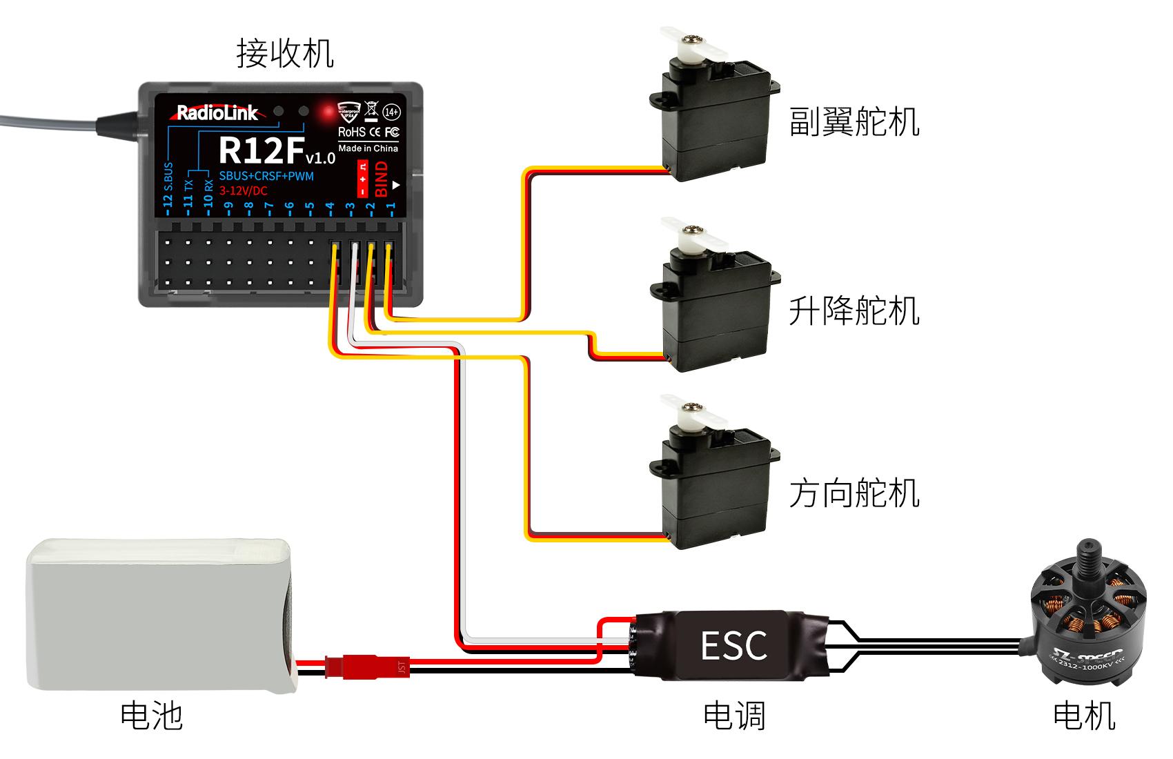 支持接收机型号 | R12F(标配), R16F,R16SM, R8FGH, R8EF, R8FM, R8SM, R8XM, R8FG, R7FG, R6FG, R6F, R4FGM |