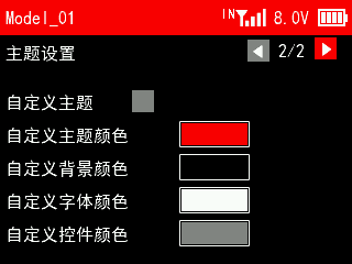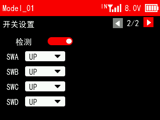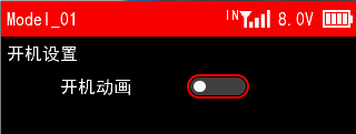 接收机电压报警:可设置开启或关闭。白点图标在左表示此功能关闭,白点图标在右表示开启。