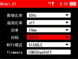 T12D遥控器进入菜单->接收机设置->射频协议,将模块选择修改为外部。