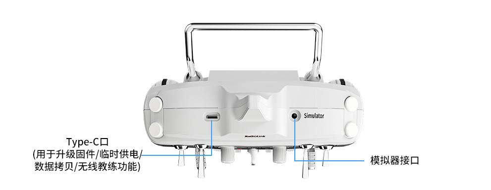 T12D 的Type-C口除了用于升级固件、拷贝数据,还可用于给T12D临时供电。当遥控器电池没电或操控模拟器时,可以将移动电源或电脑等供电设备连接至遥控器的Type-C口,给遥控器5V供电,然后将遥控器正常开机即可使用。T12D Type-C口的输入电压最大为5V,因此Type-C口输入电压不能超过5V。