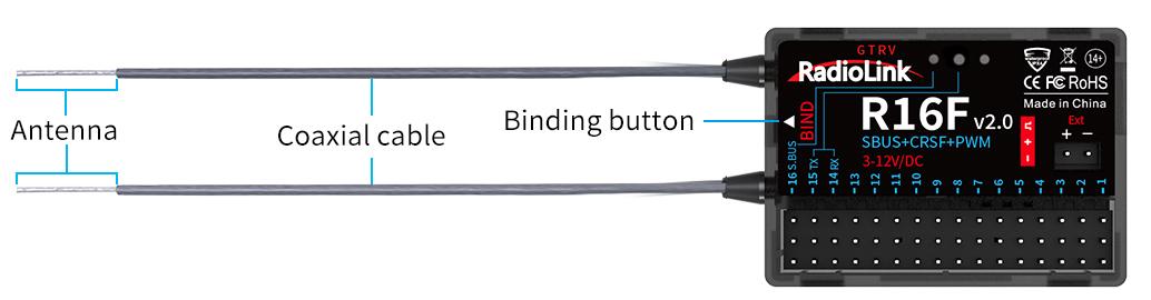Turn on the transmitter and the receiver, and the LED of R16F will start flashing slowly.
