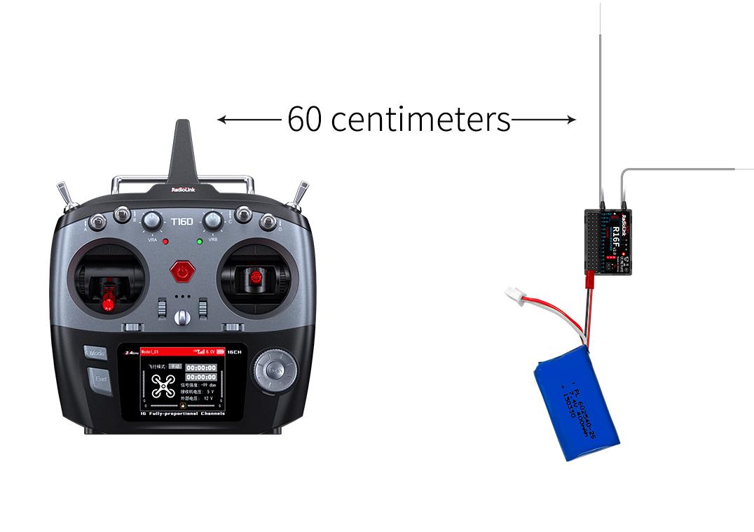 Put the transmitter and the receiver close to each other (about 60 centimeters). Note: The close distance of the transmitter and receiver may cause signal block, which leads to unsuccessful binding or signal loss.