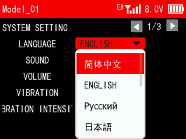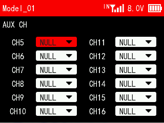RX VOLTAGE VALUE: When the receiver voltage reaches the receiver voltage alarm value, the transmitter will issue an alarm. The minimum alarm value can be set to 3V. The maximum can be set to 12V. It defaults to 4.2V.