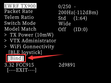After the binding is successful, the short line “-” in the upper right corner will change to "C". Return and you can see the signal tower on the top, and the LED of the ELRS receiver is always on.