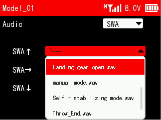 T16D supports customized switch voice. Users can use text-to-speech software to create custom voice files, and then copy the voice files into the transmitter to use their own voice.