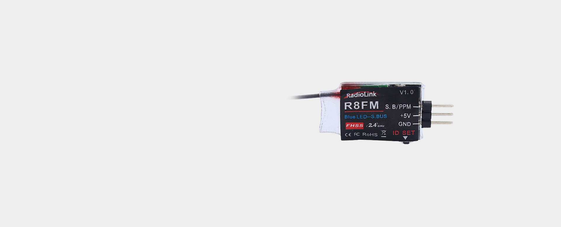 新款 mini 8通道接收机R8FM, 2.5g极轻重量, 支持S-BUS和PPM双信号输出,无需任何信号转接板,完美兼容市面上现有任意一款飞控。