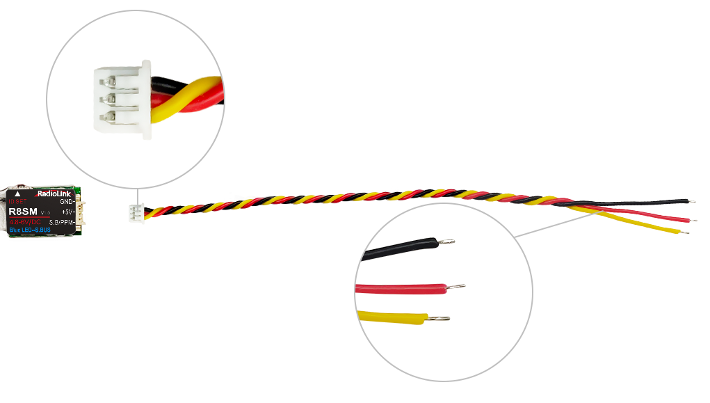 出厂标配mini 8通道接收机R8SM, 1.5g极轻重量, 支持S-BUS和PPM双信号输出,轻,快,极简连接,妙不可言!