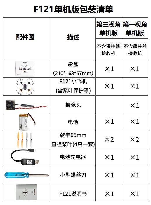 机身套装包装清单如下: