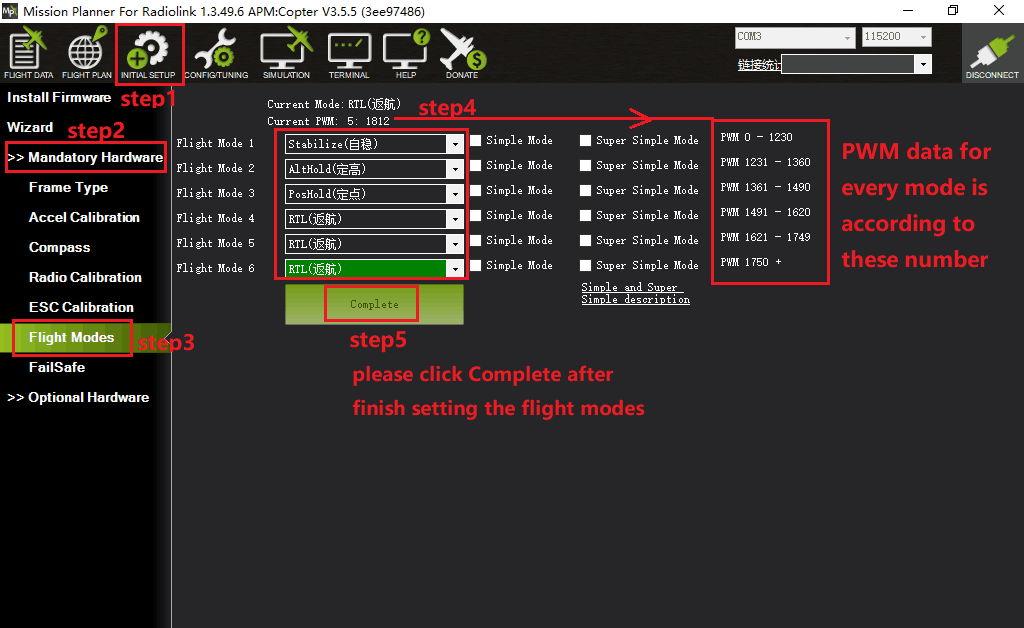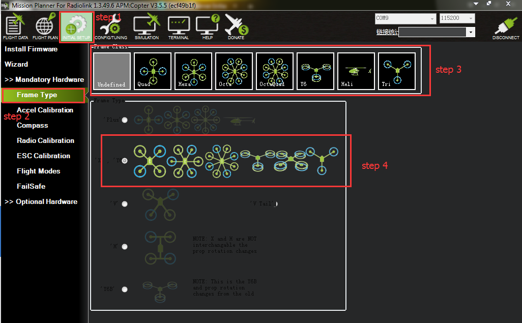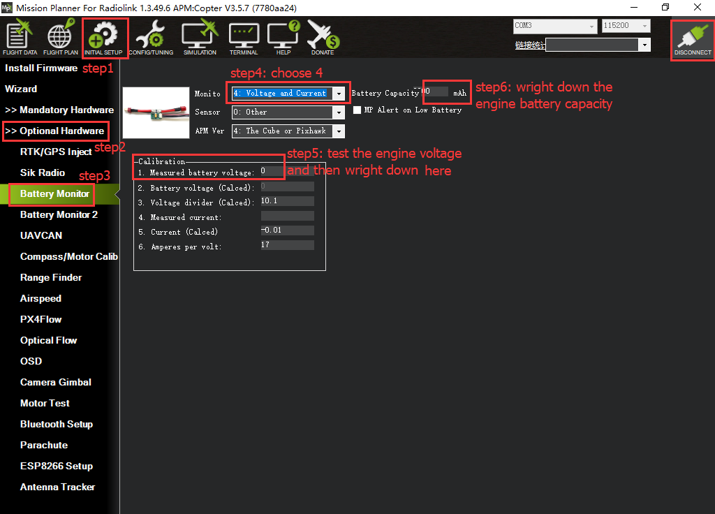 1. Connect your flight controller Turbo Pix to the Mission Planner.
