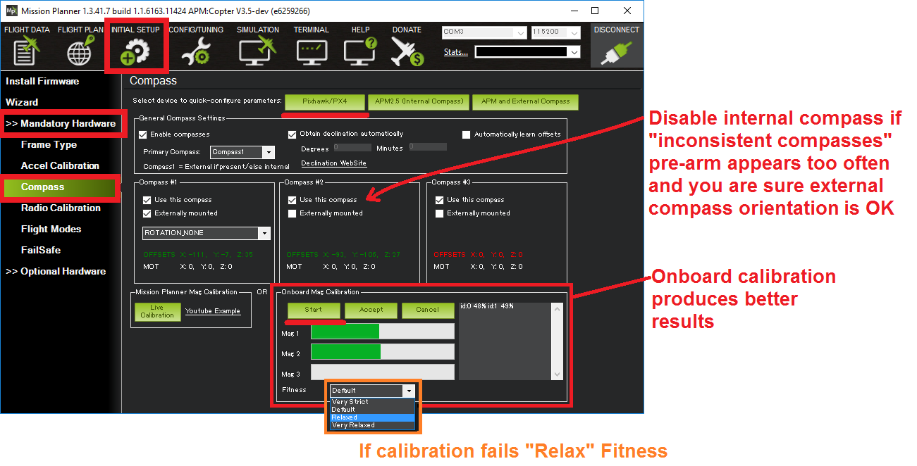 Under Initial Setup--Mandatory Hardware--select Accel Calibration from the left-side menu--Click Calibrate Level to start the calibration.