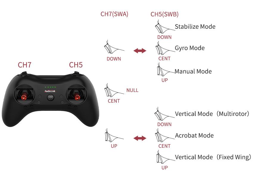 Note: If it is the PNP version(without transmitter T8S and receiver packed), please follow the instruction manual of A560 to set channel 5 and channel 7 in your transmitter.