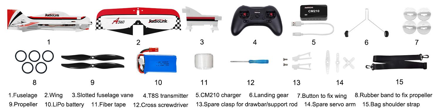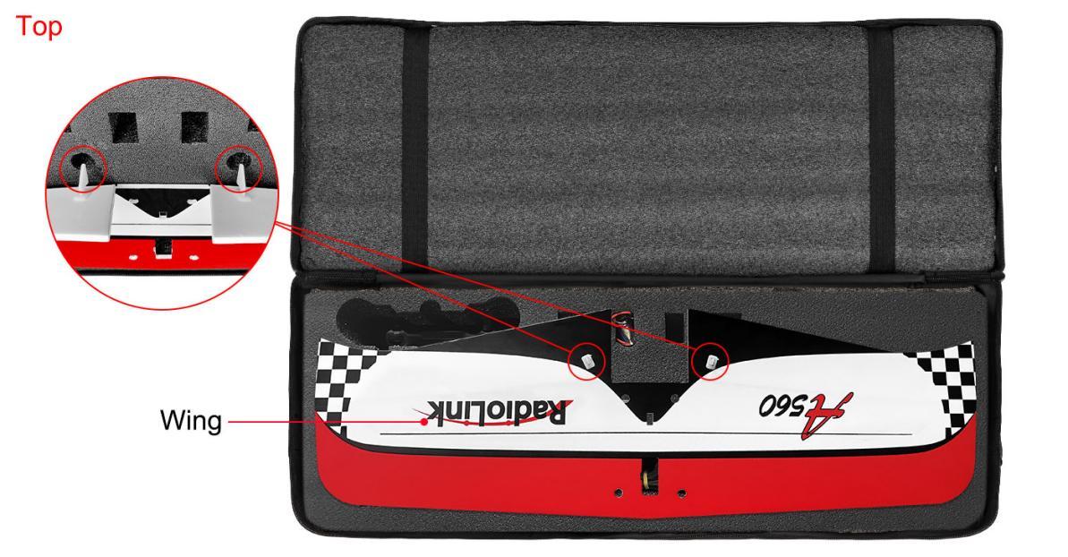 All electronic components of A560 are already set. If it’s the RTF version(with transmitter T8S and receiver packed), all you need to do after unpacking the box is to assemble the wing, and then fly it.