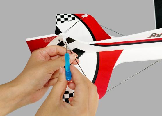 Diassemble the buttons to fix the wing. Remove the slotted fuselage vane and wing. Insert the slotted fuselage vane back.