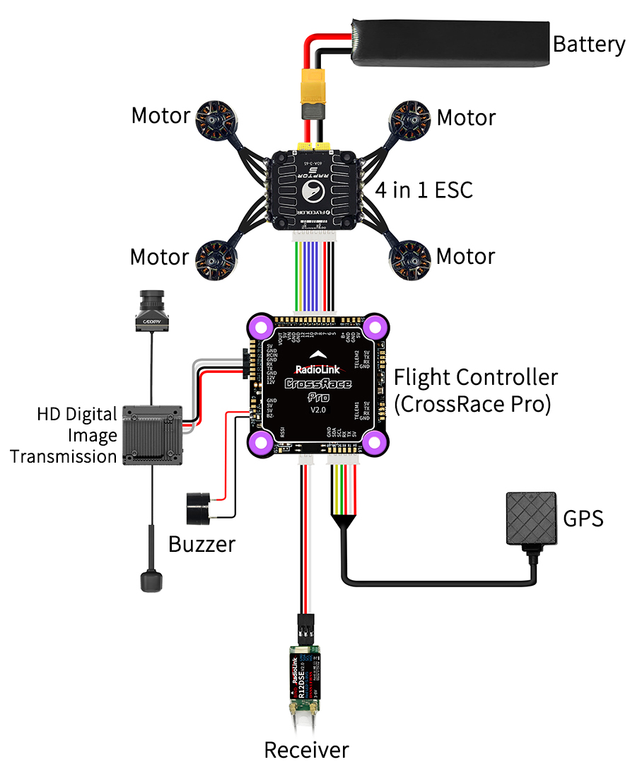 Connection Diagram of CrossRace Pro to Multi-rotor