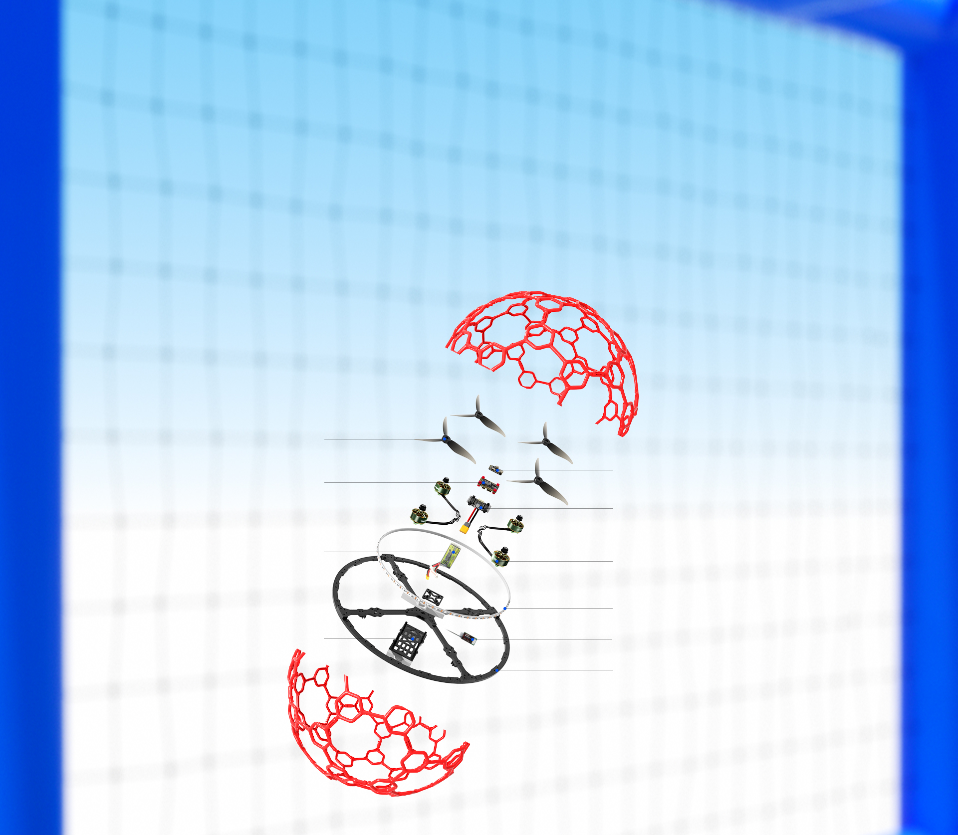 Unlike traditional racing drones with exposed propellers, the drone soccer aircraft features a fully enclosed protective frame made of high-toughness materials. The 360° shielding design eliminates propeller risks, ensuring zero injury during training and competition.