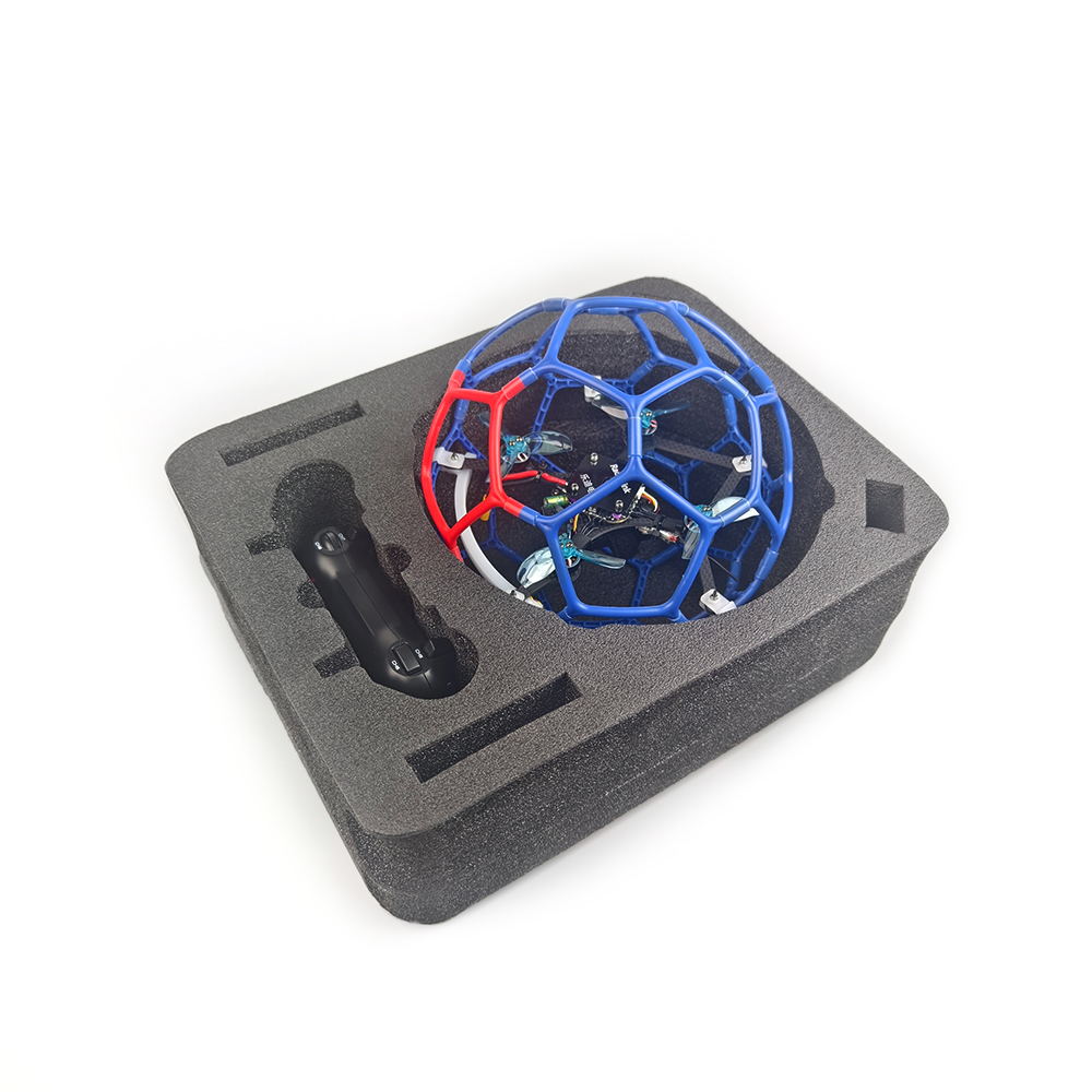 Unlike traditional racing drones with exposed propellers, the drone soccer aircraft features a fully enclosed protective frame made of high-toughness materials. The 360° shielding design eliminates propeller risks, ensuring zero injury during training and competition.