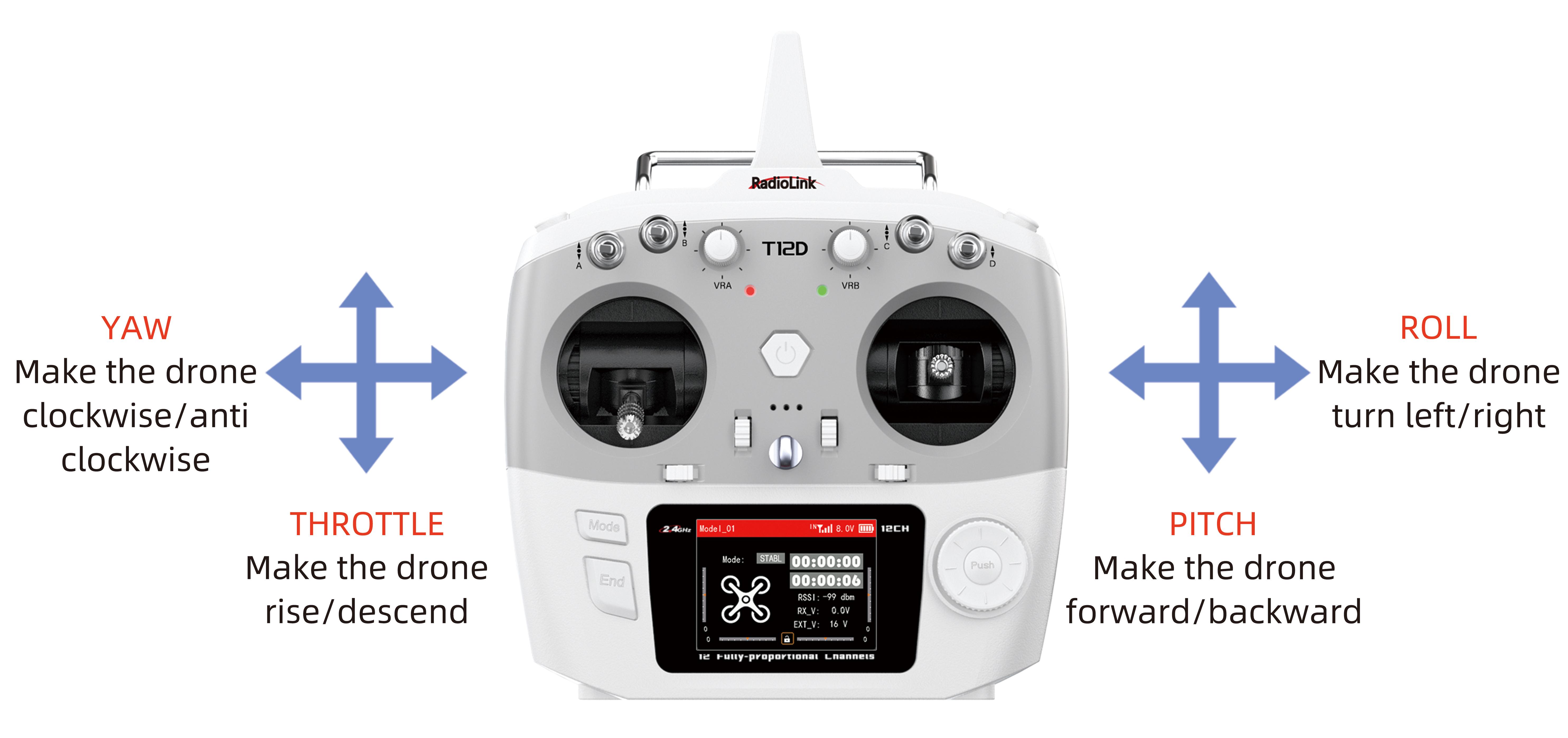The two joysticks of T12D correspond to the four basic channels respectively.