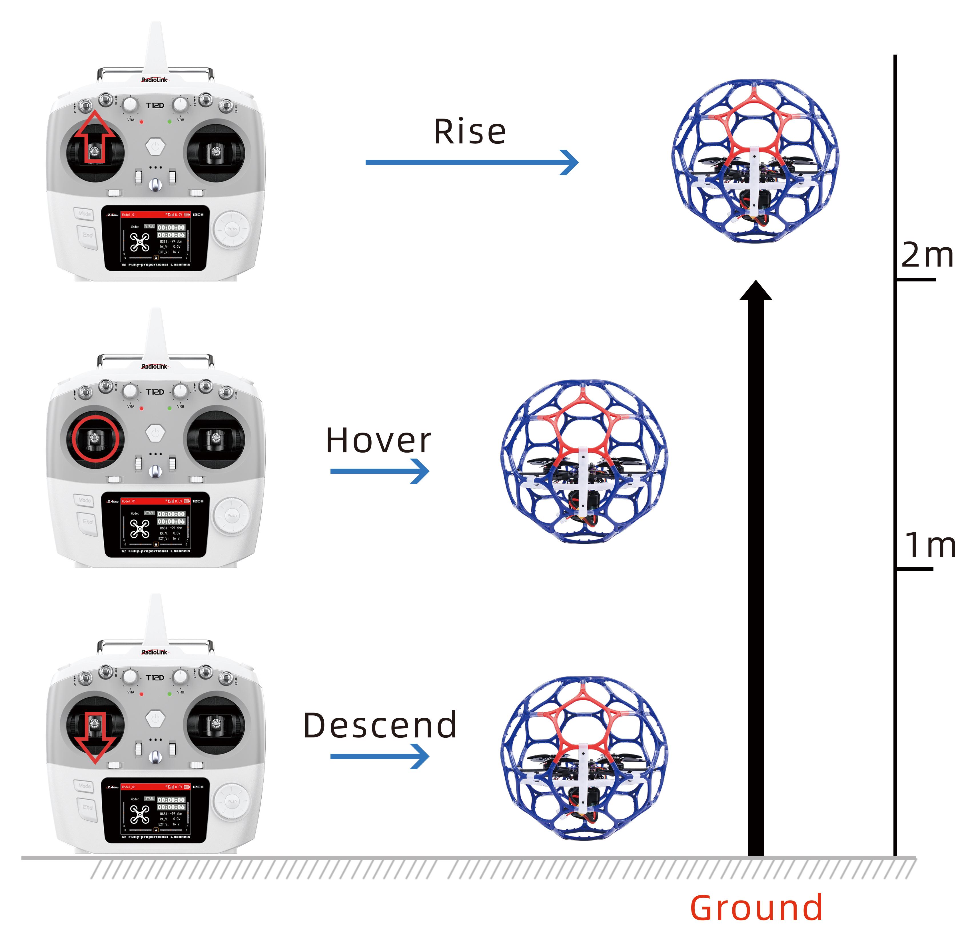 Toggle the throttle stick (on the left) vertically upward and LDZ-B20 will rise and toggle the throttle vertically downward, then LDZ-B20 descends.