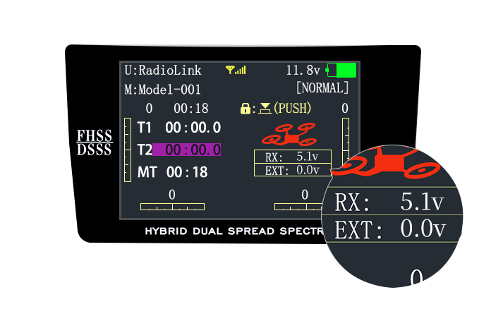 DSSS and FHSS hybrid spread spectrum, 16 channels pseudo-random frequency hopping, and QPSK modulation ensure excellent anti-interference performance, perfect for multiplayer complete synchronously.