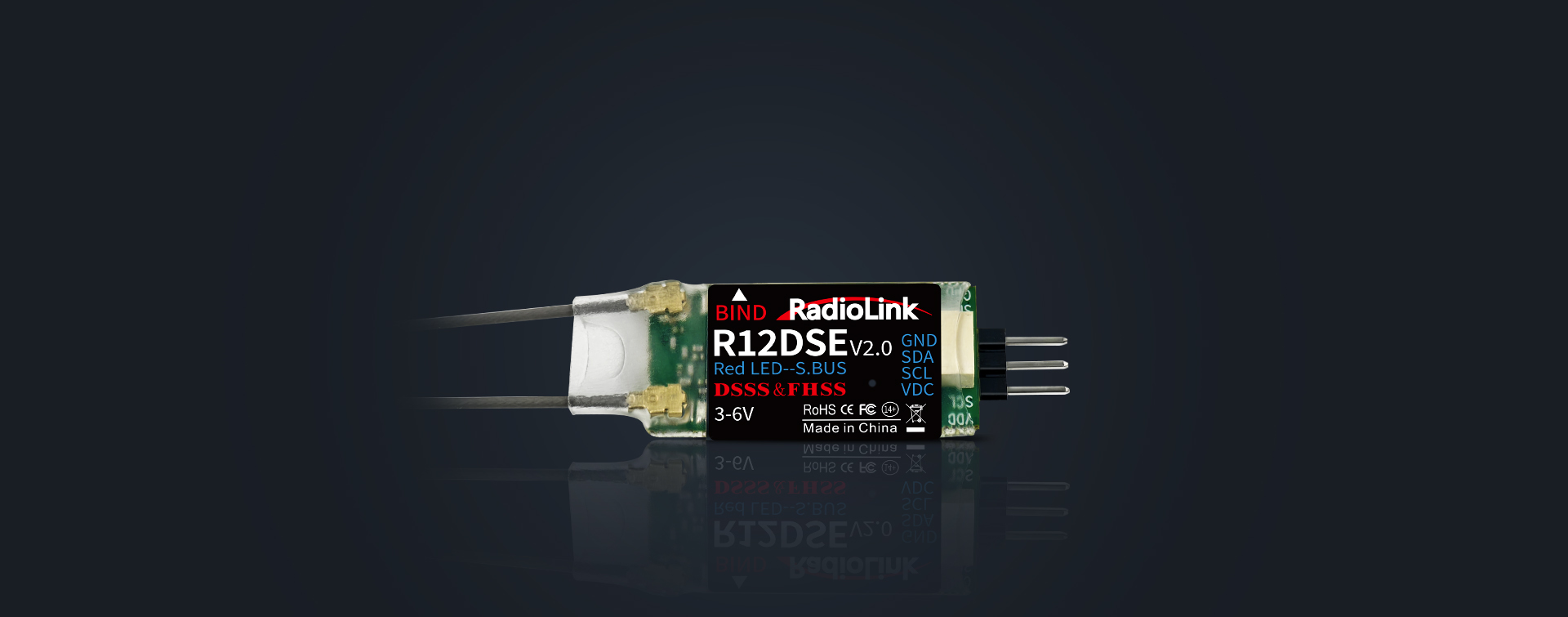 R12DSE is compatible with RadioLink AT series aircraft transmitters AT10II, AT10, AT9S Pro, AT9S, and AT9.