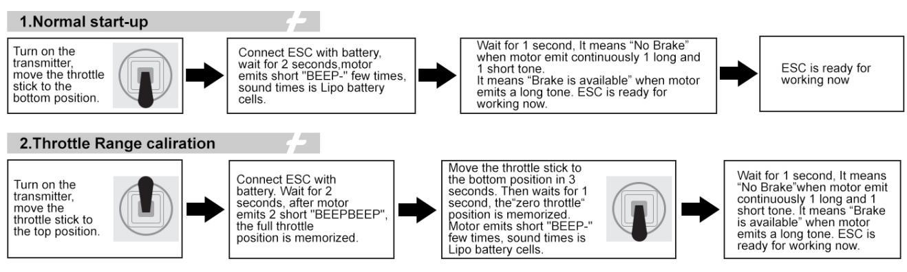 Second, calibrate the throttle range of A560 ESC. The normal Start-up and Throttle Range calibration steps of A560 ESC are as follows:
