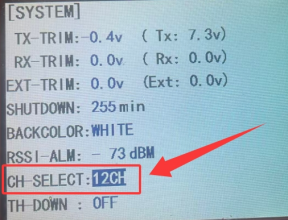 2. Please check the setting of the CH_SELECT on the transmitter. Enter SYSTEM menu and select 12CH for R12DS.