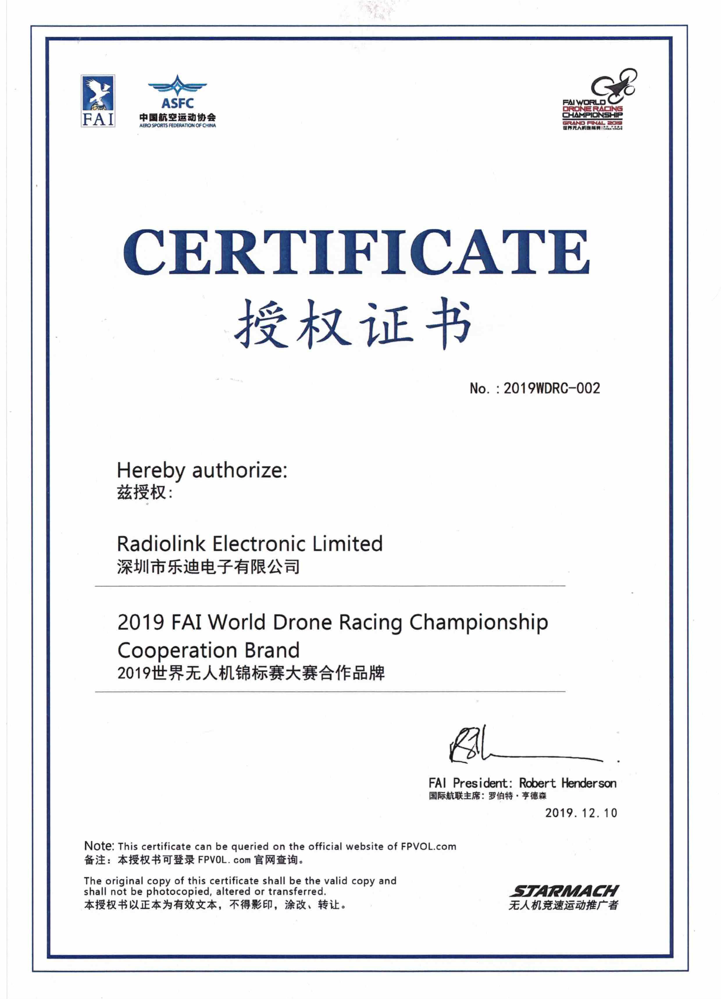 2019 FAI World Drone Racing Championship Cooperation Brand