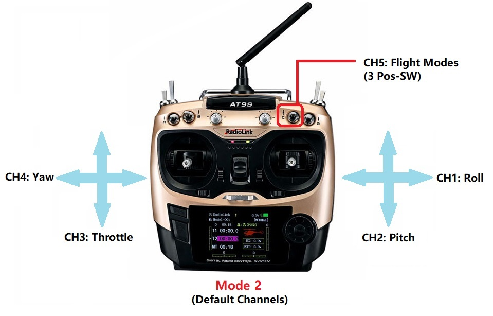 Setup RC transmitter flight mode.