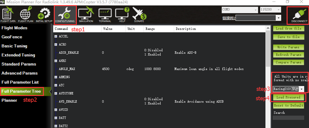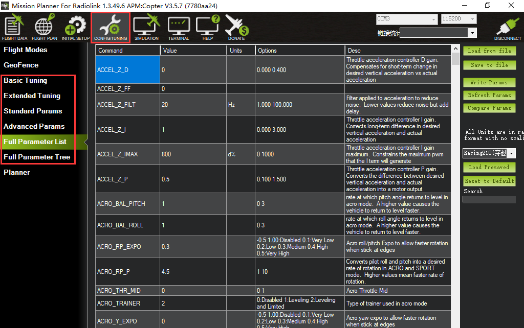 Load Presaved: load the parameters that Radiolink upgrade the files which design for 210-250 frame racing drone to crossflight.