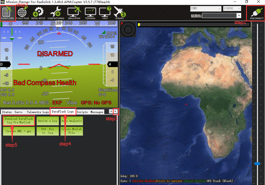 1. Connect your flight controller crossflight to the Mission Planner.