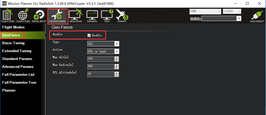 Enabling the Fence in Mission Planner