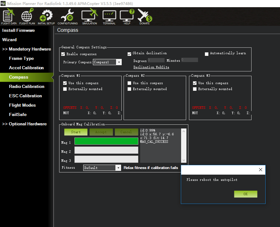 There are two situations about compass calibration: