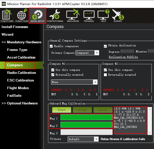 Q: RadioLink Mission Planner has two compasses shown if FC connected is GPS integrated. How to distinguish which FC compass it is?