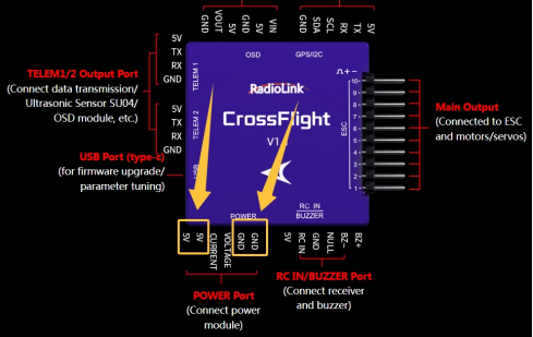A: The ESC pins of crossflight only supply power for external devices (such as servos), not for the flight controller.
