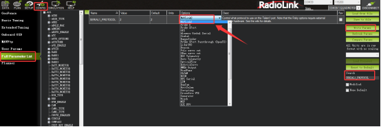② Enter Software Config -- Full Parameter List, then search for “SERIAL1_PROTOCOL”, and change the va lue to “5”.