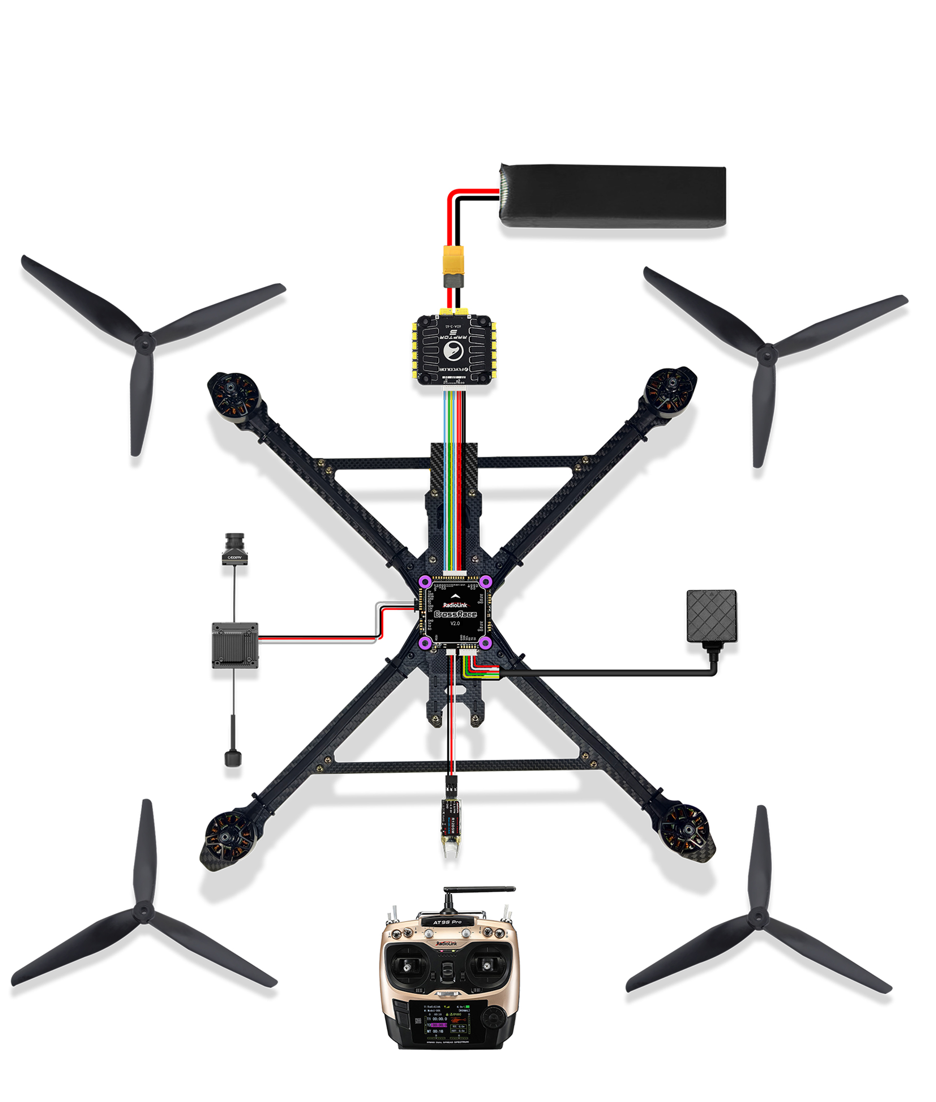 融合了自主飞行飞控APM(ArduPilot)的高精度定点飞行和Betaflight的专业手动操控性能。