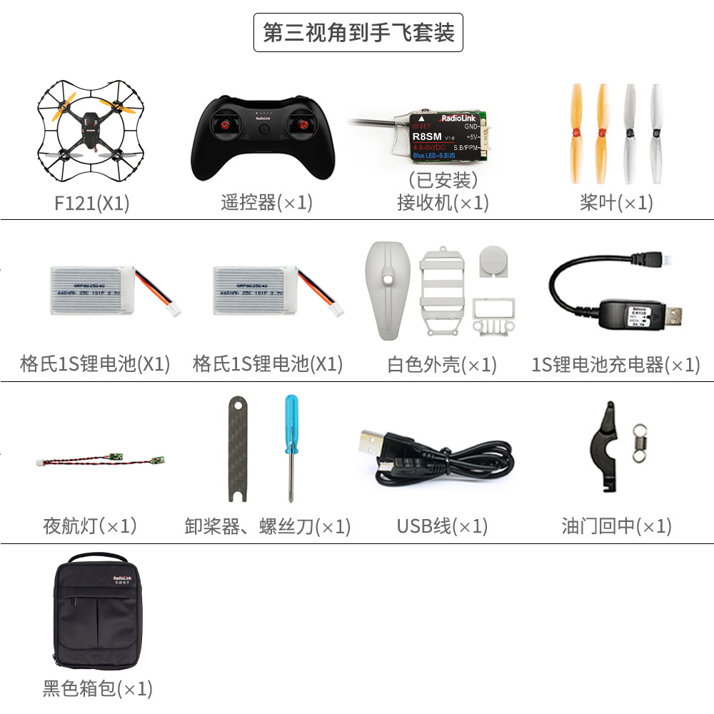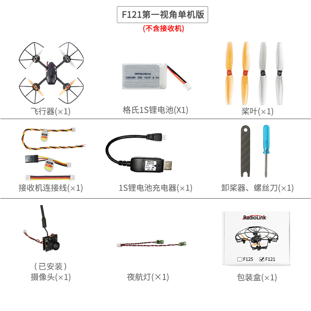 F121第一视角图传版本配备摄像头一体式200mW图传。