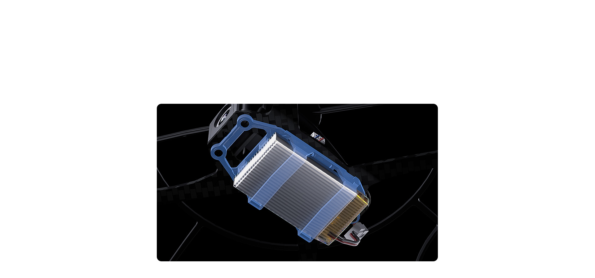 图传摄像头固定底座,即便撞机也不易松动/脱落。机架上盖一体式图传天线保护架,保护图传天线不被桨叶割伤,避免拿进拿出包装盒反复弯折导致的天线断裂。