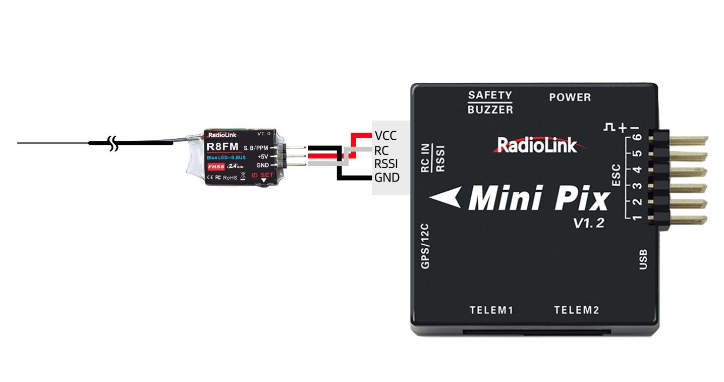 If pilots’transmitter has done binding with receiver, only need to connect the receiver to the Mini Pix flight controller after receiving the stand-alone version of F450.