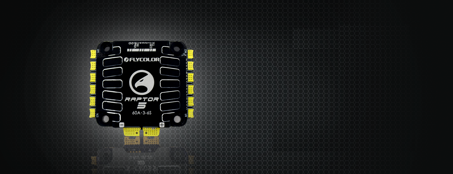 The frequency is up to 64MHz, the continuous current is 60A and the burst current is 70A, supporting a 3S-6S LiPo battery. Large-area aluminum heat sinks can effectively slow down the temperature rise.