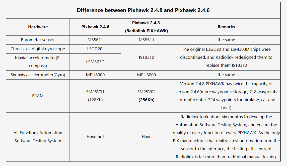 Q: What's the difference between Pixhawk 2.4.8 and Pixhawk 2.4.6?