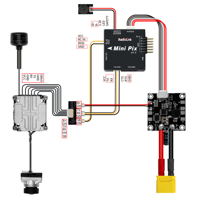Here are the connection diagrams. For DJI digital FPV system, you need RadioLink DiViT, digital video transmission adapter board.