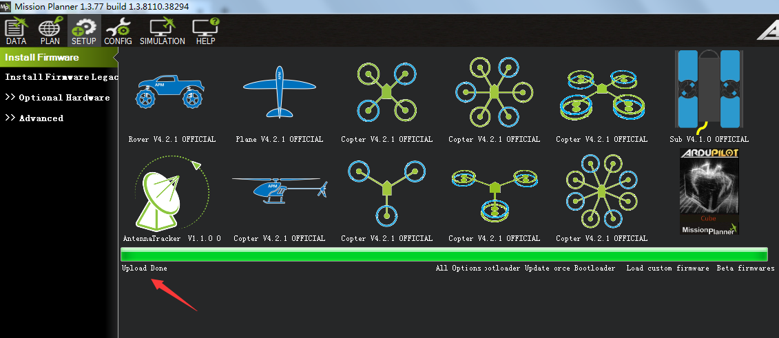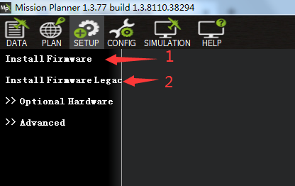 Please connect your PIXHAWK and computer via USB cable(other devices do not need to be connected). Open the Mission Planner to loading the firmware you need to your PIXHAWK.