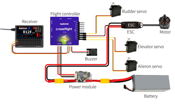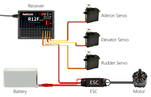 RadioLink R12F, 12-channel receiver, 2.4G FHSS spread spectrum algorithm and 67-channel pseudo-random frequency hopping, supports PWM, SBUS and CRSF signal. It is high voltage servo supported and can get the new functions by updating the firmware. R12F is compatible with RadioLink T16D/T12D/T8FB/T8S/RC8X/RC6GS V3/RC4GS V3/RC6GS V2/RC4GS V2/RC6GS/RC4GS transmitters.