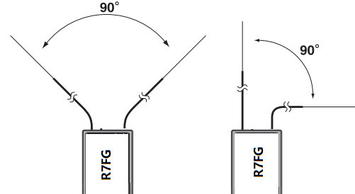 A: The antenna of the receiver should be set upright, because car models run on the ground and the boats on the water. Double antennas should be set at a 90-degree angle like below. And do not keep the antenna close to metal parts, electric machine, ESC, or other electronic devices.