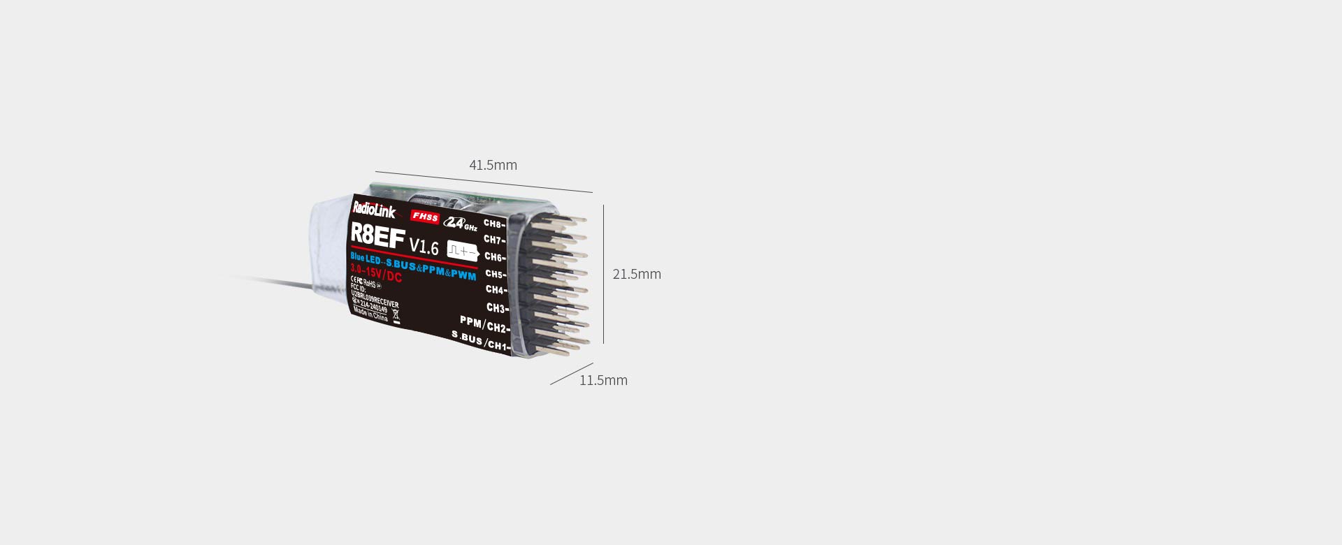 Supports high-voltage servos. Compatible with RadioLink drone/airplane transmitters T16D, T12D, T8FB, T8S; and car/boat transmitters RC8X, RC6GS V3, RC4GS V3, RC6GS V2, RC4GS V2, RC6GS, RC4GS series.
