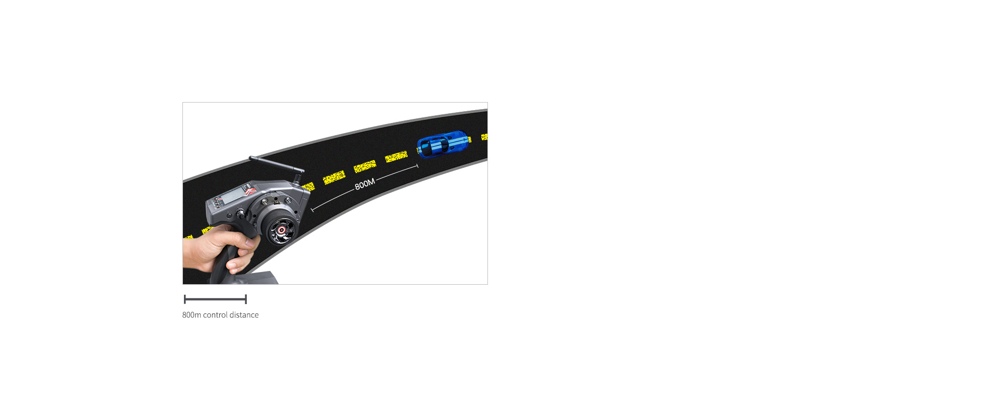 The stable remote-control distance of R8F is up to 800 meters on the ground. Control with the camera and the display screen/goggle makes the drivers enjoy FPV fun.